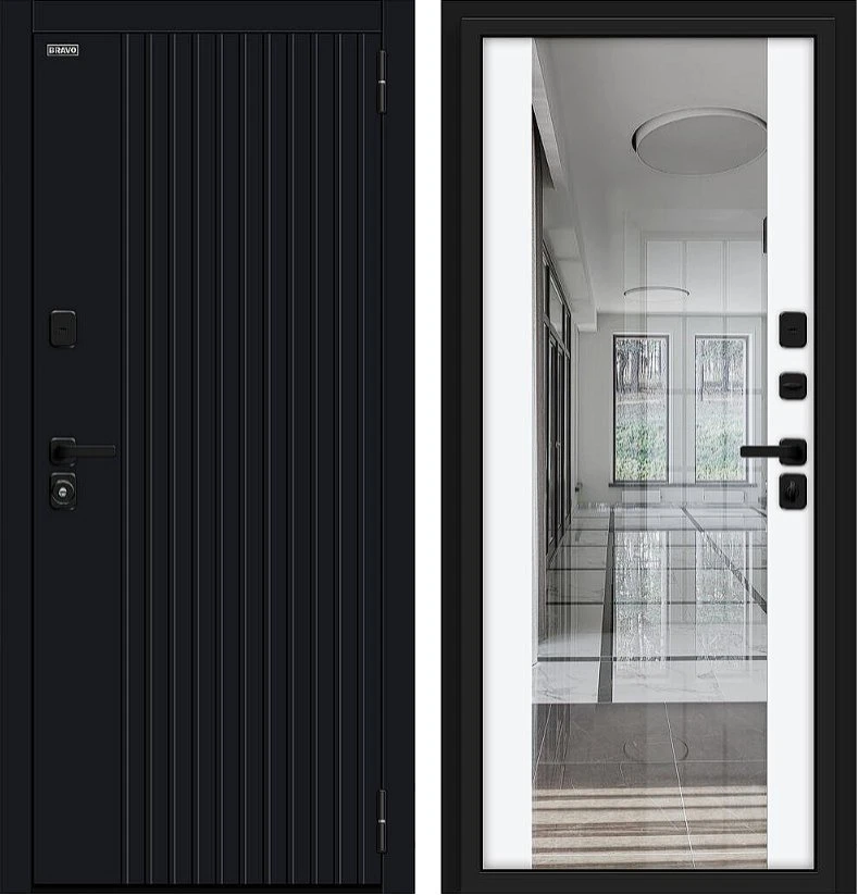 Надежная входная Дверь Браво Вижн/SBlack Black Shell/White Silk премиум класса по цене 45 563 руб. Большая толщина стали защитит от проникновения в ваш дом, квартиру или коттедж. Используется очень качественная фурнитура: замки, цилиндры, ручки, защелки. Покрытие и отделка двери изготовлено под внимательным контролем производителя. Дверь имеет долгий срок службы и гарантию.
